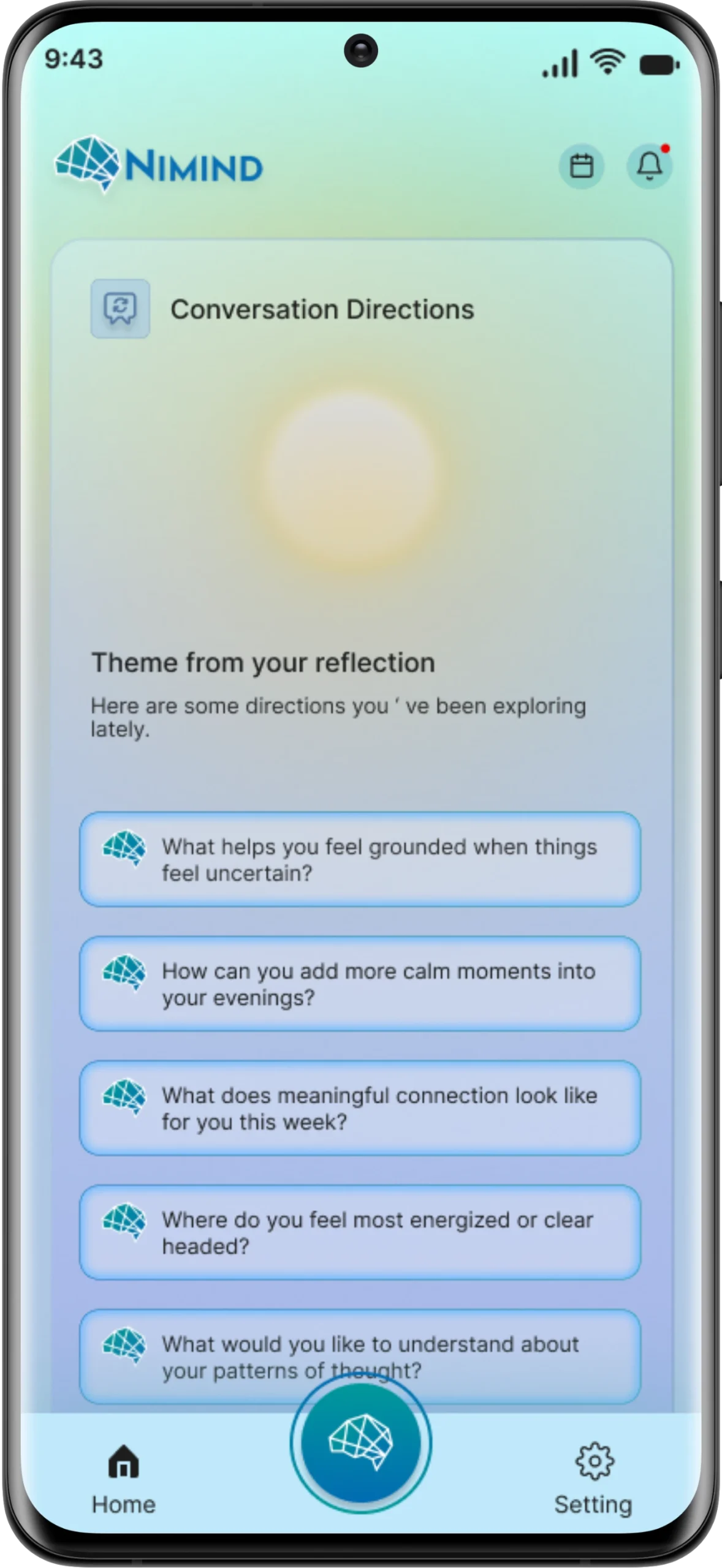NiMind supports well-being but does not diagnose or replace professional mental health care.